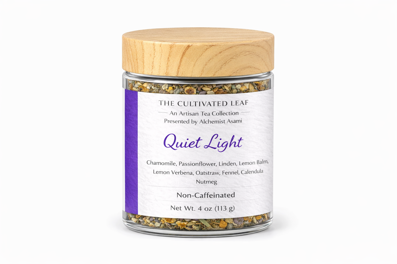 Caffeine-free blend featuring hibiscus, citrus peel, lemon balm, and lavender.